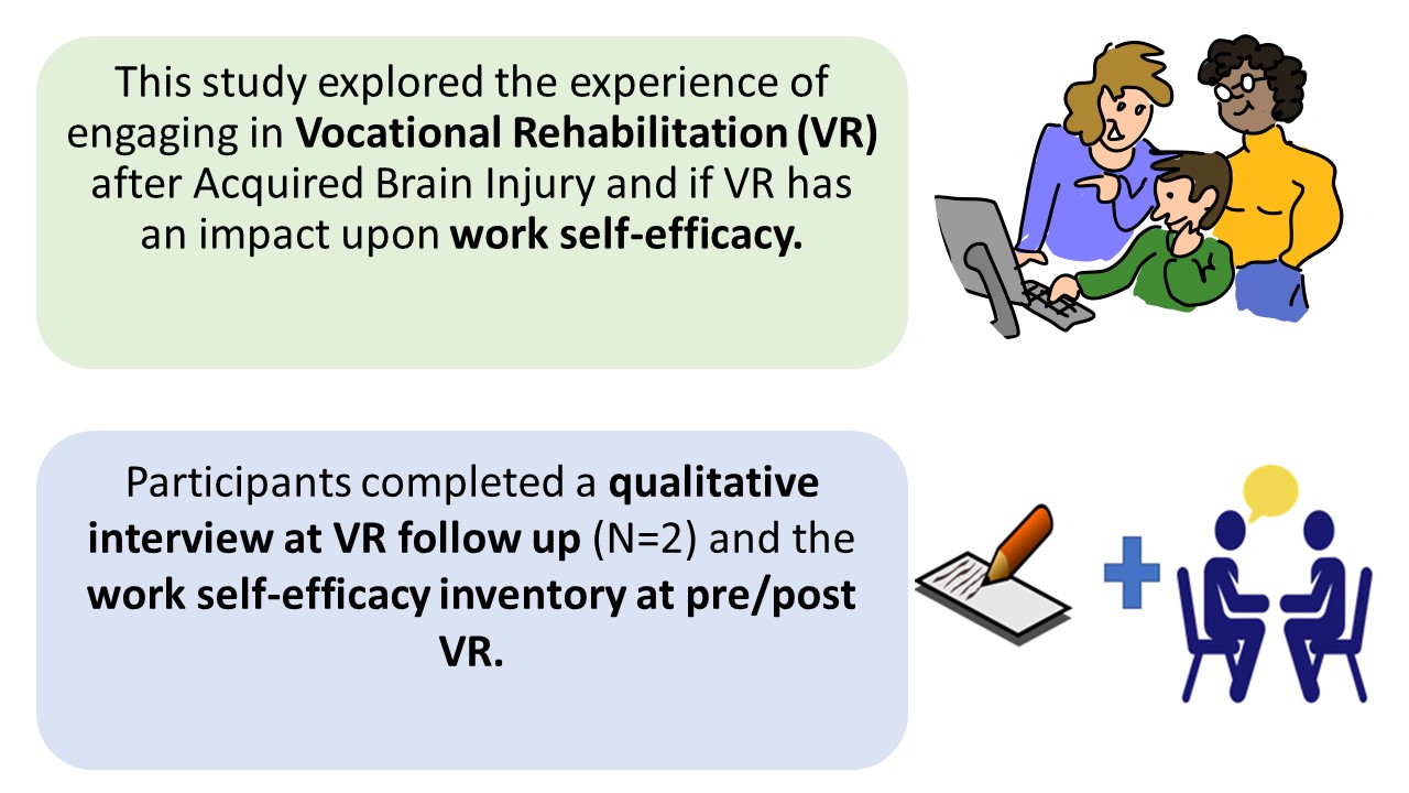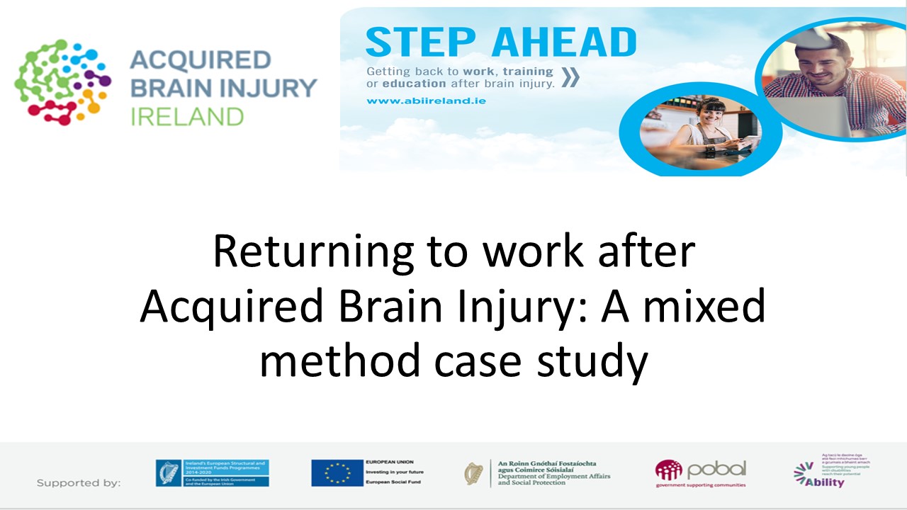 Valerie has a B.A. and M.Sc. in Psychology. She conducted this research with her colleagues Ms Emer Duffy and Ms Laura O'Rourke during her time working with the Step Ahead Vocational Rehabilitation service with Acquired Brain Injury Ireland. Ms Emer Duffy is a senior occupational therapist with Acquired Brain Injury Ireland. Ms Laura O'Rourke has a B.A. and M.Sc. in Psychology and has recently qualified as a behaviour specialist. We believe that everyone has the right to work.